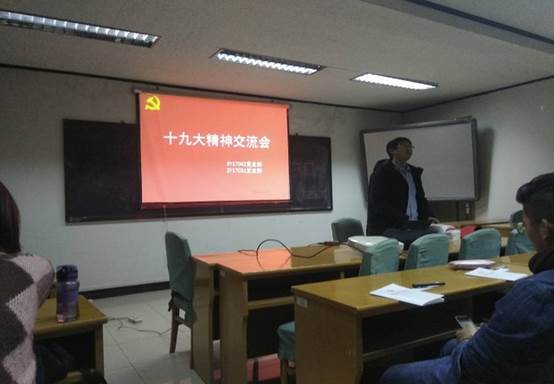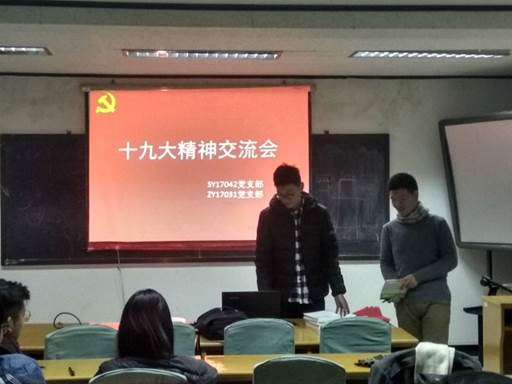 为了贯彻十九大精神,认真学习十九大相关内容, SY17042党支部与ZY17031党支部于2017年12月10日联合举办十九大精神交流学习会特色党建活动。