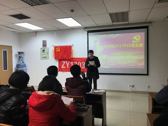 2017年12月10日星期日晚九点,北京航空航天大学自动化科学与电气工程学院ZY17035党支部在E706召开十二月份预备党员转正大会暨“反腐倡廉每季一课”学习会。ZY17035党支部有8人出席,1人请假。