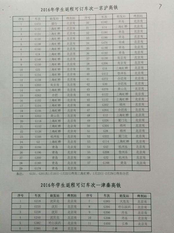 2)部分列车无硬座或硬座少,请学生不要选择。