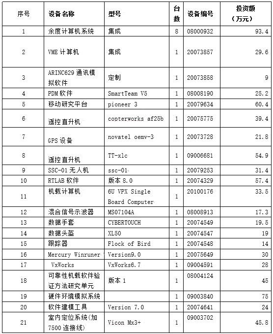 飞行器控制一体化技术国家级科技重点实验室共享资源信息